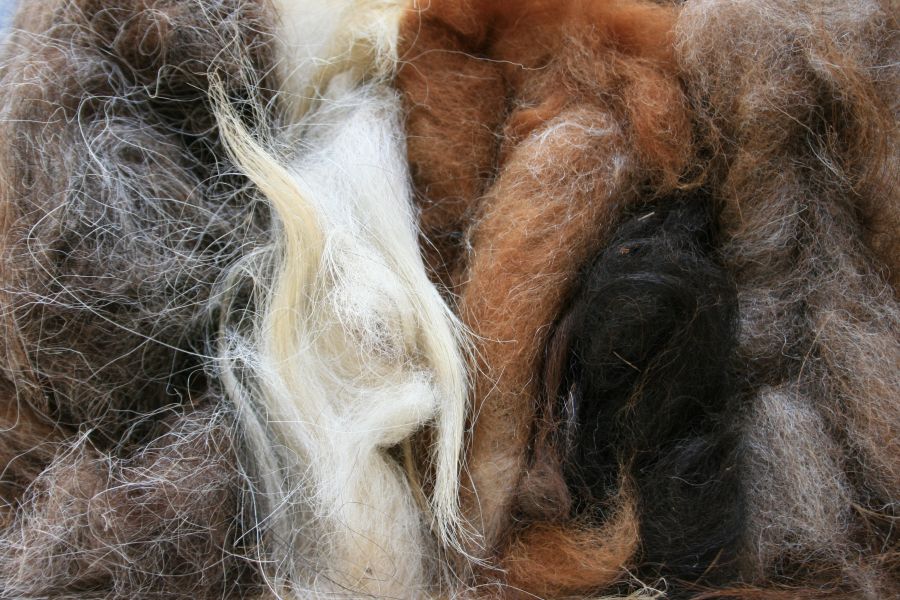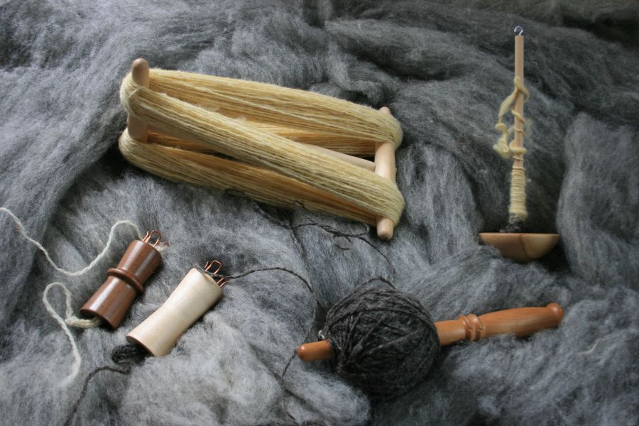 Die Wollverarbeitung findet je nach Jahreszeit und Wetter bei uns im Wohnzimmer oder auf der Terrasse statt. Der handwerklichen Verarbeitung der Rohwolle widmen wir uns mit viel Liebe und Geduld. Die Arbeitsschritte vom Schaf zum Garn in wenigen Worten: scheren, sortieren, waschen, kardieren, spinnen und verzwirnen... dann wahlweise färben, stricken, häkeln oder weben… alternativ nass oder trocken filzen. Was sich ganz einfach anhört, ist ein zeitaufwändiger Prozess - jedoch jeden einzelnen Moment wert. Das Spinnen und Filzen hat eine fast meditative Wirkung und die Mühe wird schließlich belohnt: mit gewonnener Wolle für die Weiterverarbeitung oder fantasievollen Filzobjekten. Wolle ist ein toller Rohstoff, den uns Mutter Natur schenkt - vielseitig und voller guter Eigenschaften, aber leider etwas in Vergessenheit geraten – das wollen wir ändern. Aufgrund der langwierigen Vorbereitung dauert es noch etwas, bis wir fertige Wollprodukte zum Verkauf anbieten können.